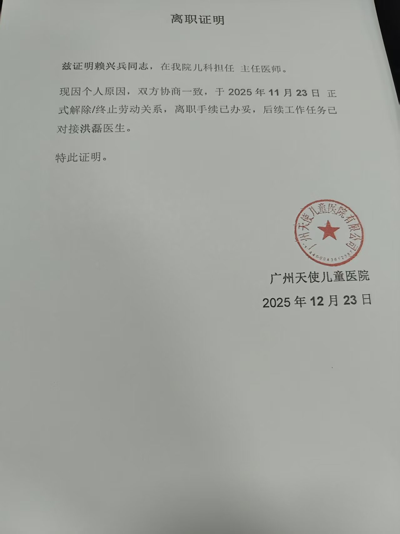 现因个人原因,双方协商一致,于2025年11月23日正式解除/终止劳动关系,离职手续已办妥,后续工作任务已对接洪磊医生。